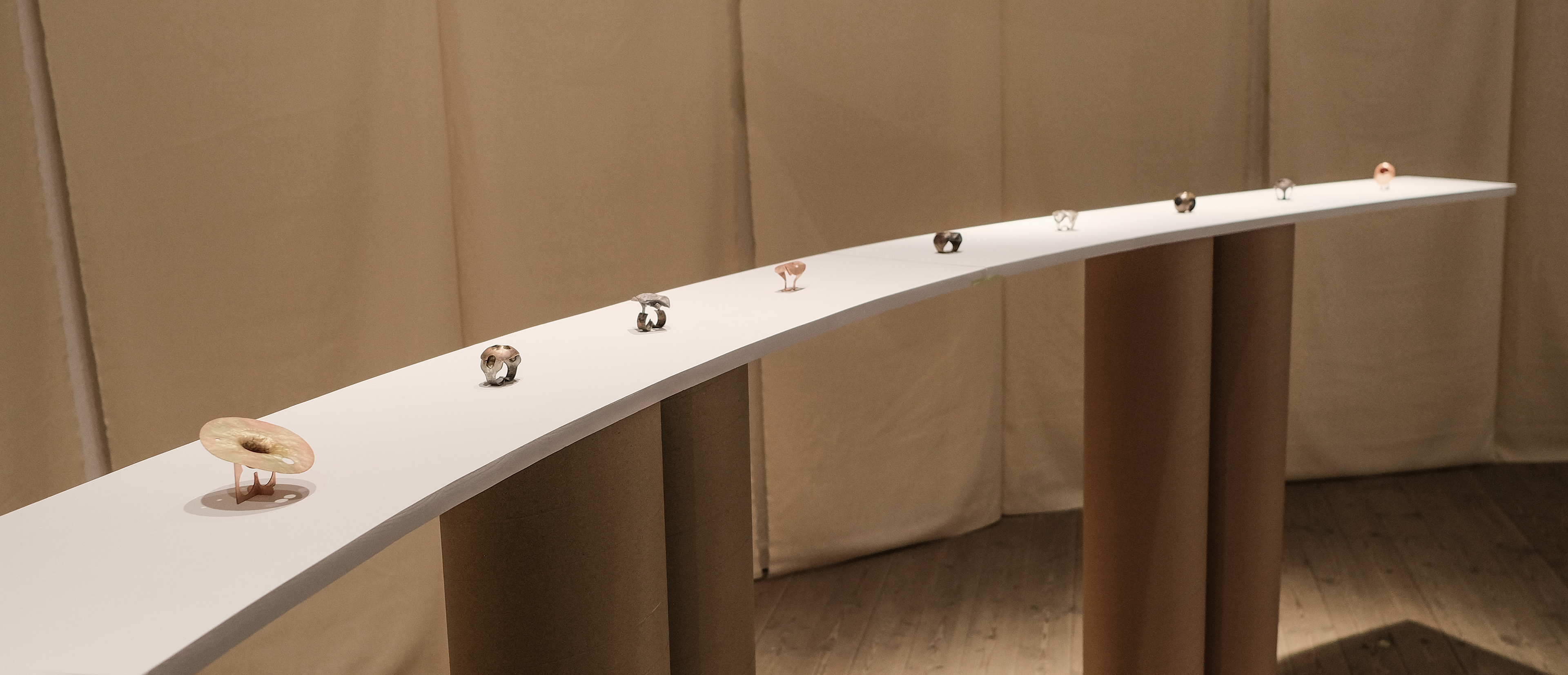 In this exhibition, spaces surrounding our body was explored through installation and art jewelry; where the making of jewelry, in this case - rings, does not view the body as an object, but focuses on the void, the negative spaces around and between our fingers. It is also about focusing on what we already have, and can claim for ourselve - our body. In the works, spaces are being rediscovered, framed and viewed through various openings. Light is being captured, projected, and then shines back to where we started – that is the body.