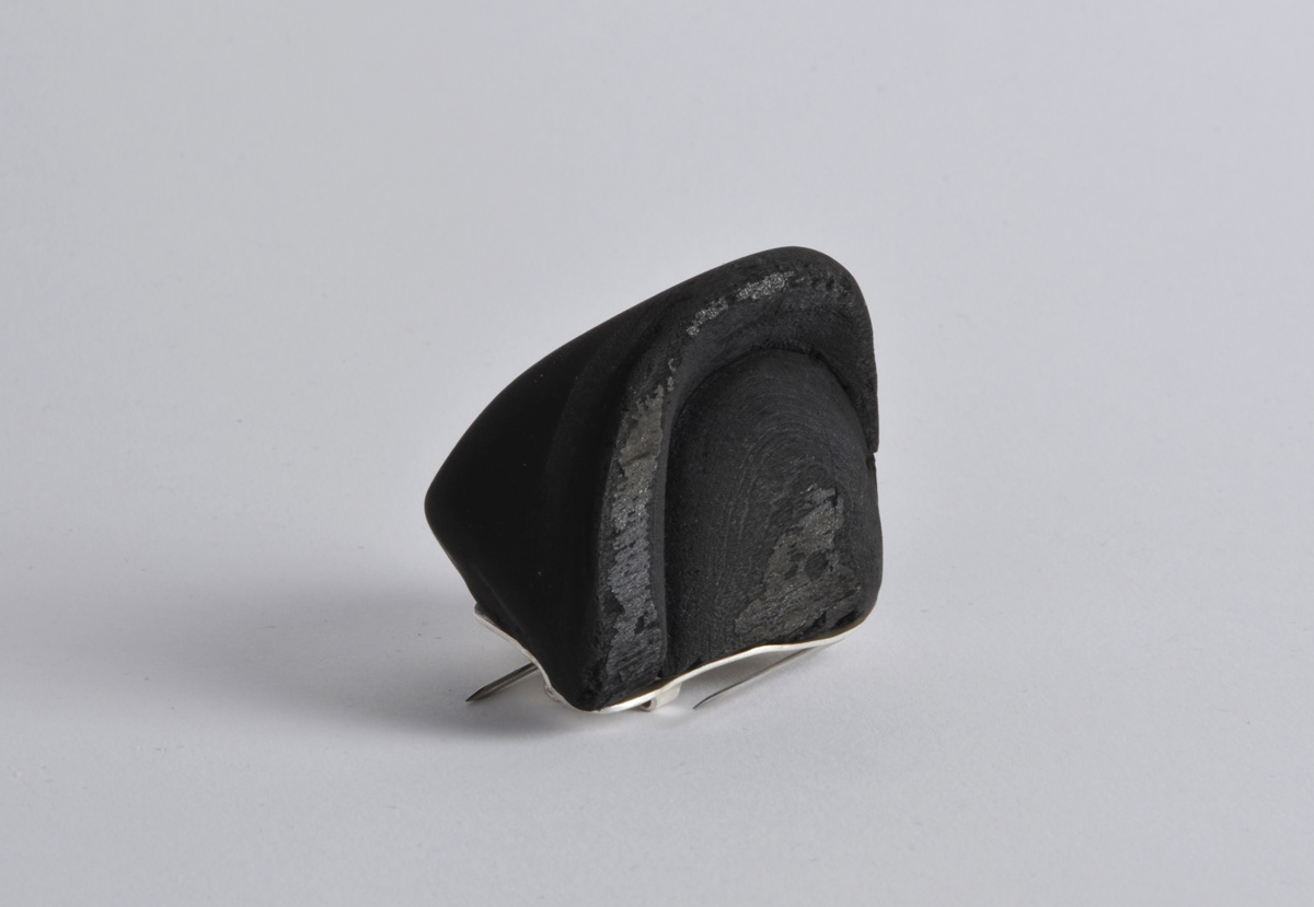 `Fragments from the primitive hut´, was inspired by the concept of ´Primitive Hut´ in architecture theory that questions the highly decorative and decadent Rococo style dominating the time when it was written, and called to return to the simple and essential. It is a series of three brooches made from carving grill charcoal.