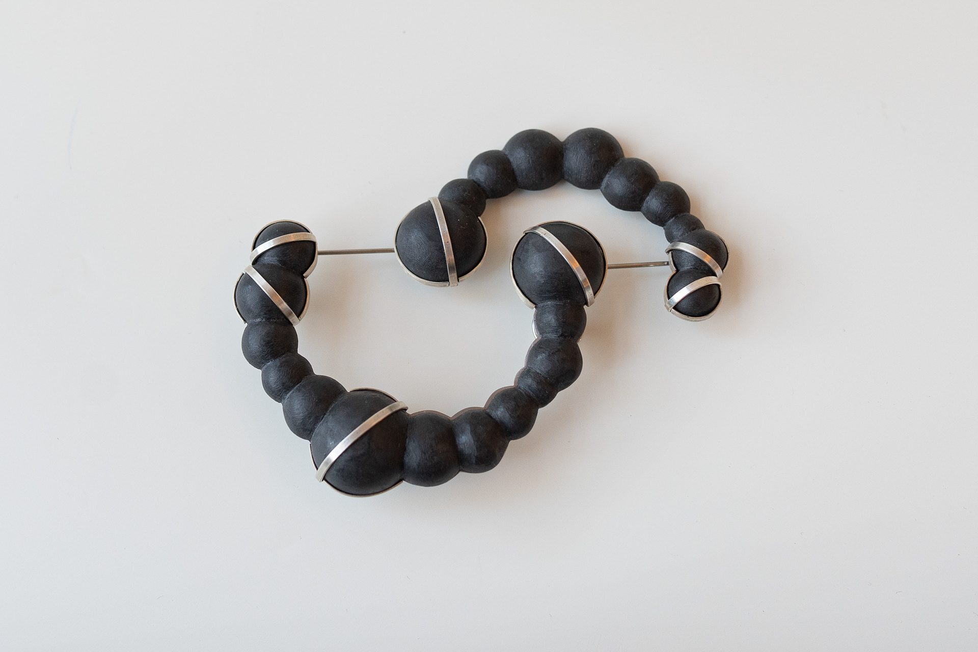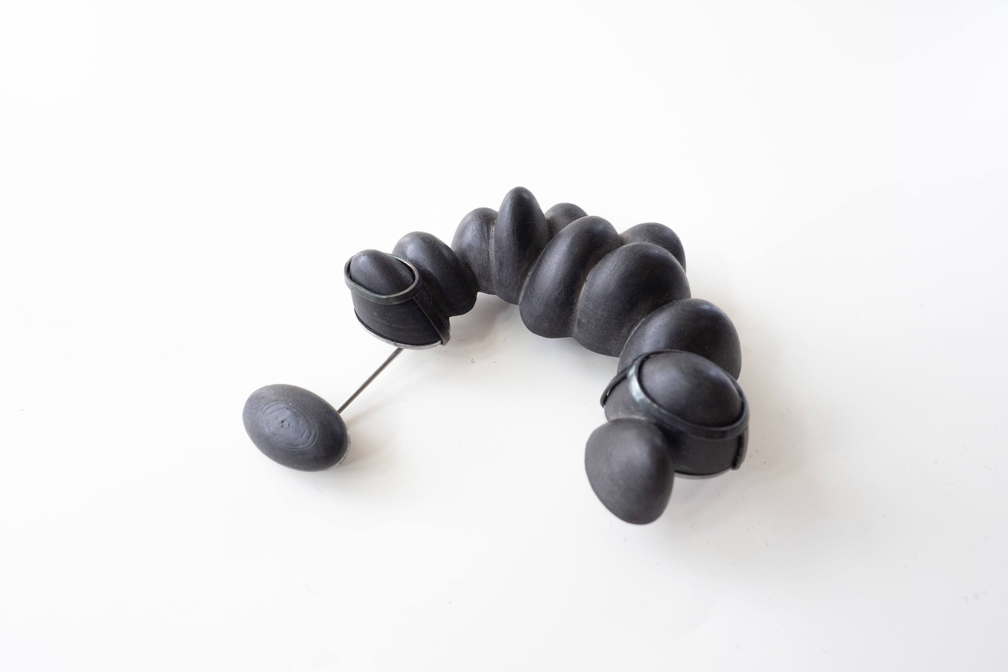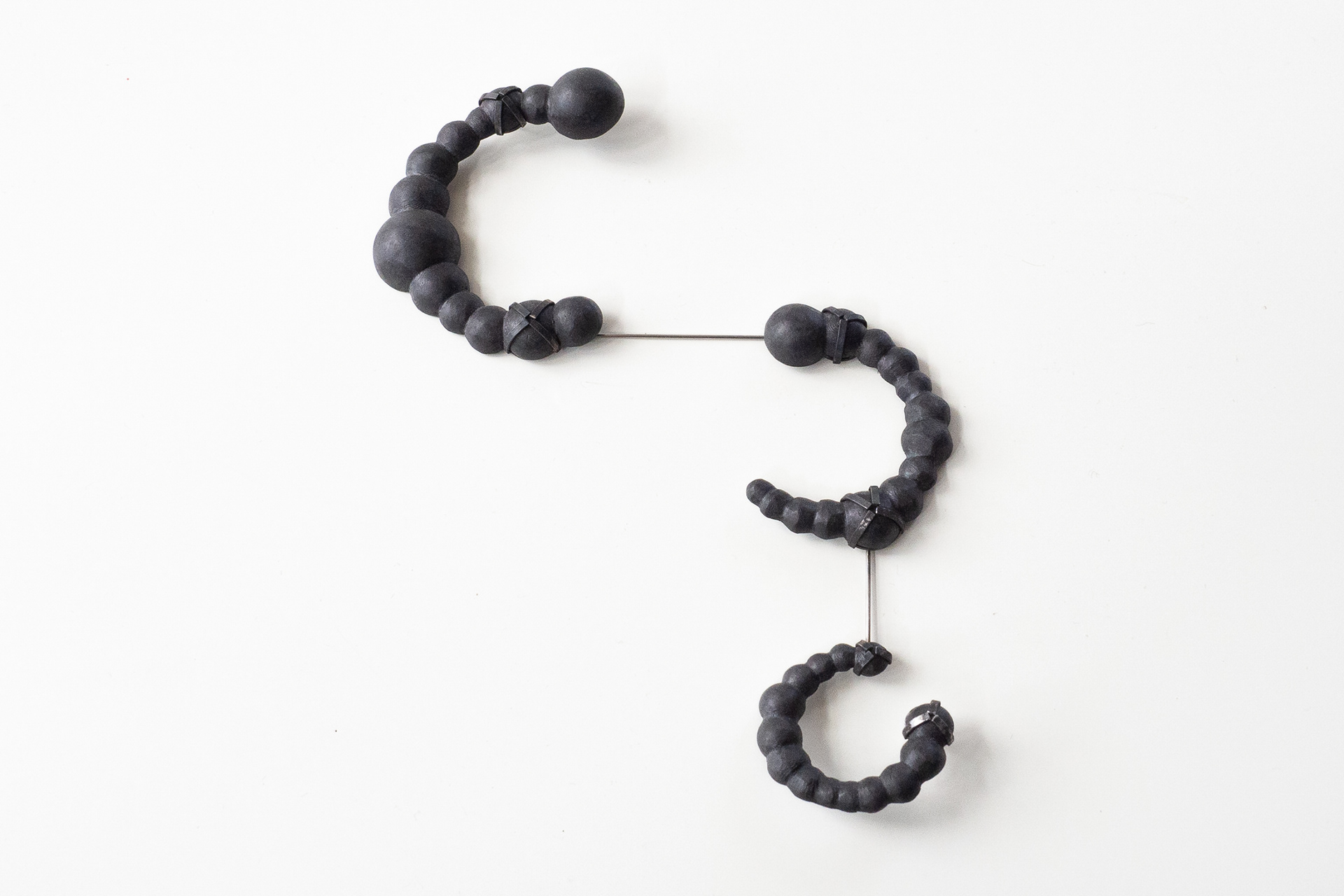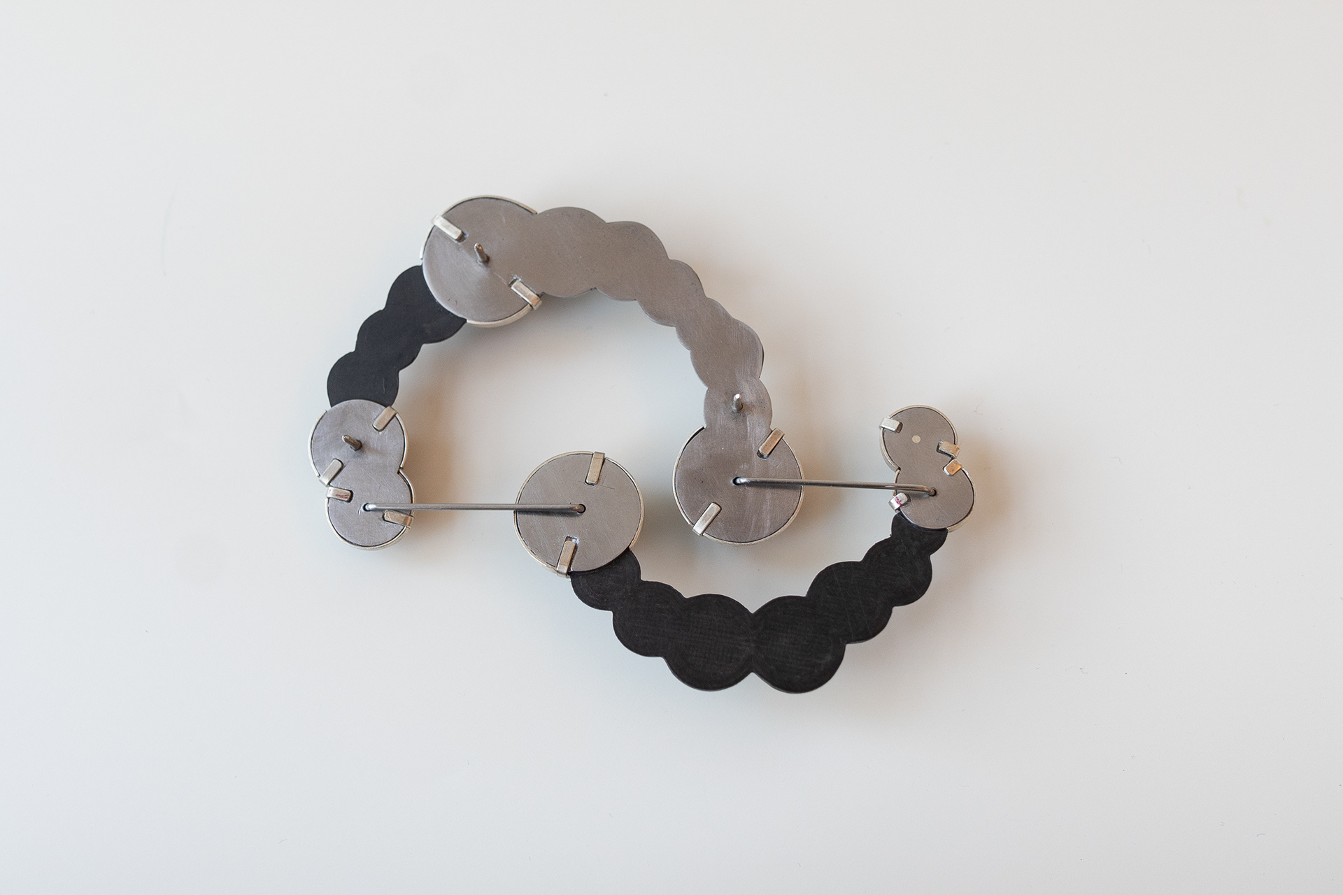 Verket utforsker vår oppfatning av estetikk skapt av teknologisk produksjon. Den prøver å leke med den uklare linjen mellom hva som er håndverk og hva som er maskinlaget. Akkurat som ‘plastiglomerate’ som finnes på mange strender rundt om i verden der naturens kraft gjør maskinproduserte plastprodukter til naturlige steiner; de 3D-printede sporene på overflaten av smykkene mine ble forsiktig fjernet for hånd, for å bringe en visuell uklarhet om materialets opprinnelse.